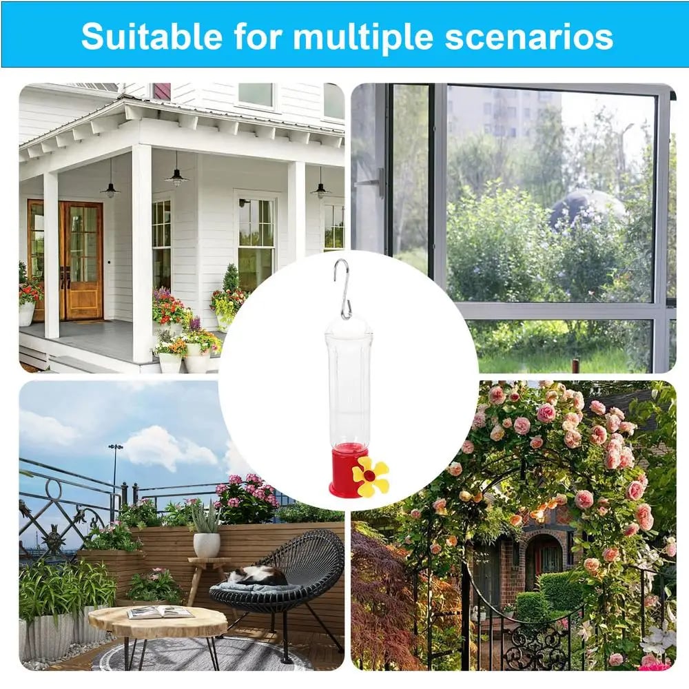 3.Effortless Feeding Design: Equipped with a flower-shaped suction port, this hummingbird feeder's multifunctional design is easy to install and hang in various locations, such as windows, living room glass, or backyard.