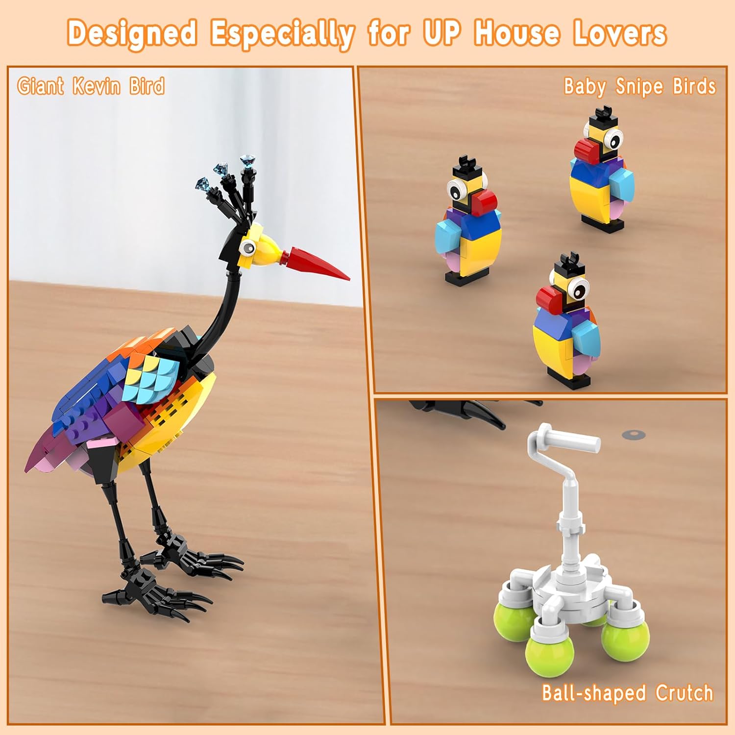 - Complete Set - The Kevin Bird and Dug Dog building toys come with 268 bricks, 1 packaging box, and 3 color paper instruction manuals. The models are of size Bird: 6.25 x 3.18 x 9.29 inches,Add these!Increase your friends on the journey of pursuing dreams.