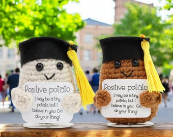 Our Positive Potato & Graduation Pickle collection is lovingly crocheted and full of good vibes — the perfect way to celebrate high school, college, or even PhD grads!